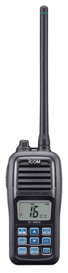 The IC-M23 buoyant VHF Marine Handheld Transceiver measures just under 13cm in height and is the smallest and lightest buoyant handheld in the market*. Even with its incredible size, the IC-M23 can match the audio and battery performance of other comparable models on the market. What’s more, the IC-M23 sports a bright red LED which flashes if dropped in water, even if the radio is turned off making it easy to find, day or night.